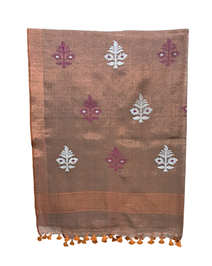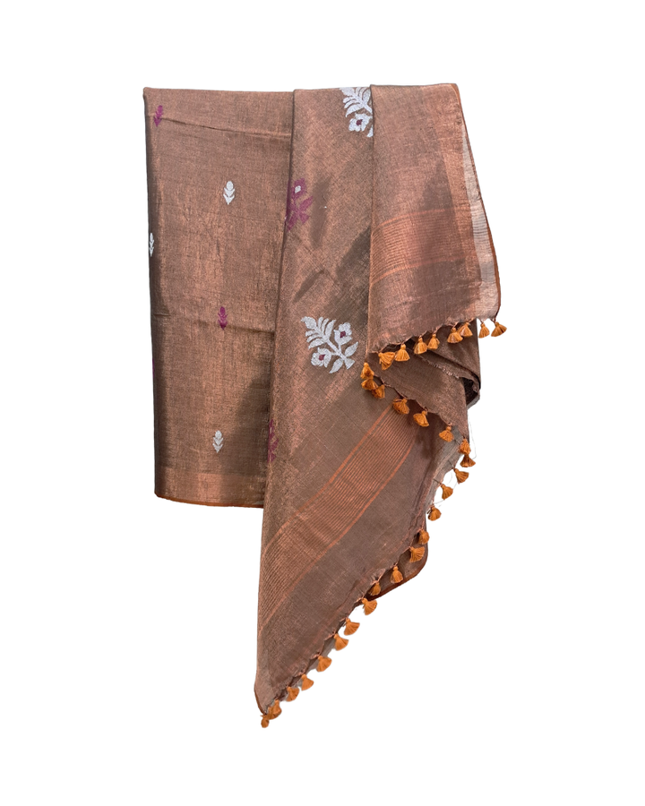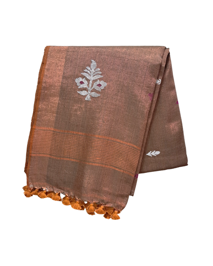 Handwoven Tissue Linen Jamdani Saree - Brown