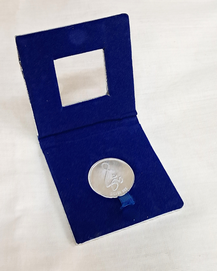 Invite the Divine Energy and Grace of Lord Shiva and Blessings of Pujya Gurudev with this Silver Coin. This coin depicts the powerful Jagadeeshwara Shiva on one side and Pujya Gurudev Swami Chinmayananda's signature OM on the other side.