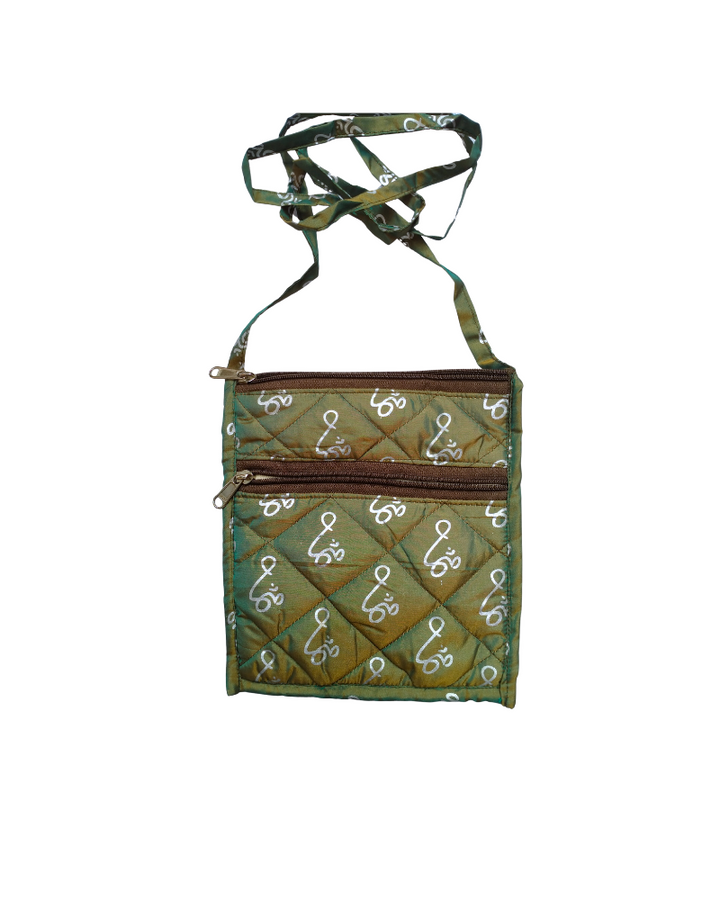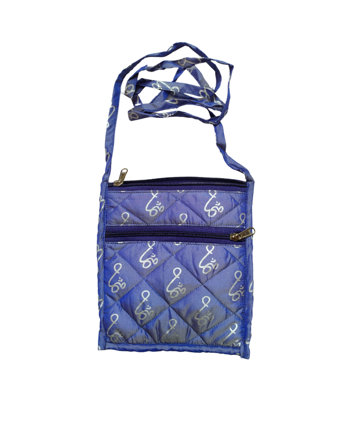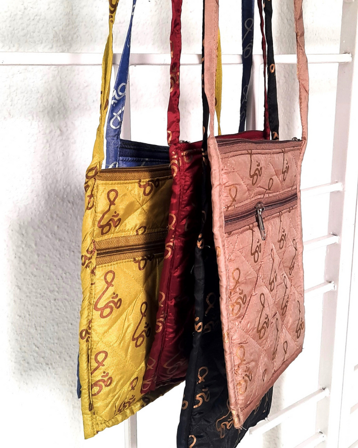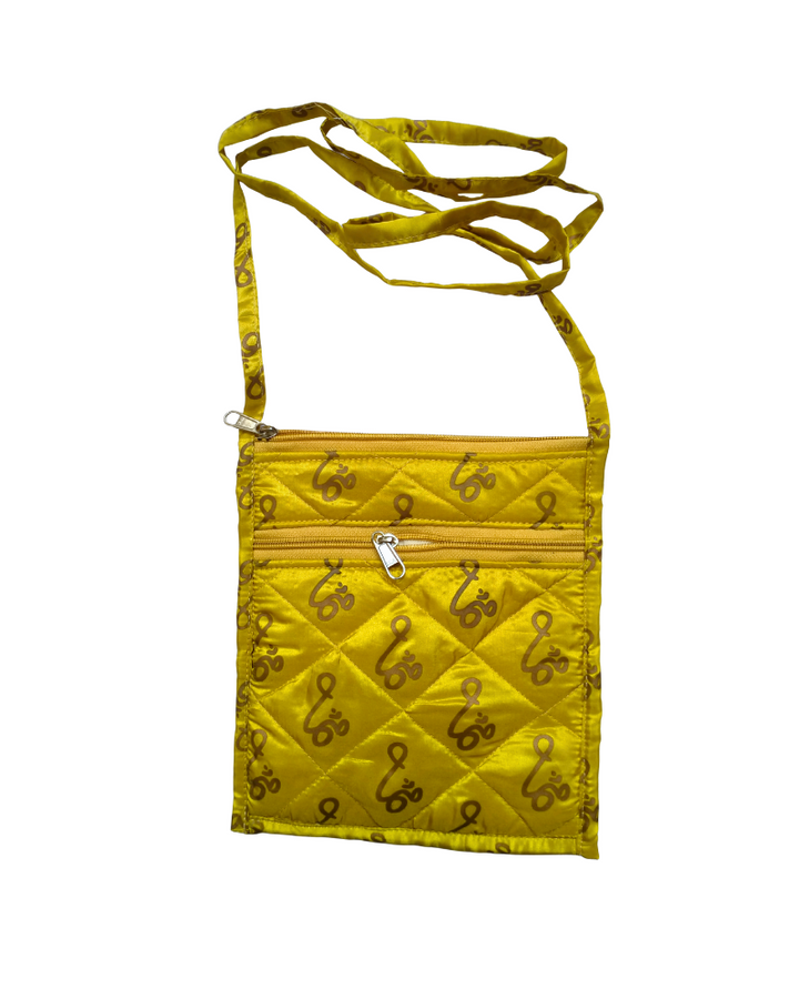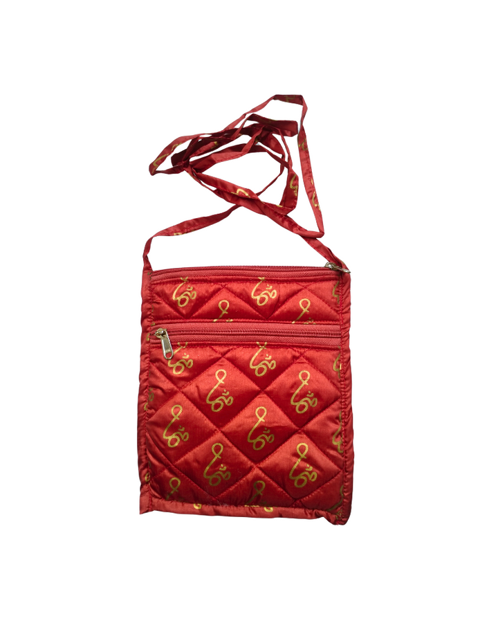 A compact and elegant sling bag made from luxurious poly silk fabric, beautifully adorned with our signature Om print—a design that represents peace, mindfulness, and spiritual strength. Thoughtfully quilted to protect your essentials like your phone, wallet, and keys, this bag offers a lightweight yet stylish way to carry what matters most.