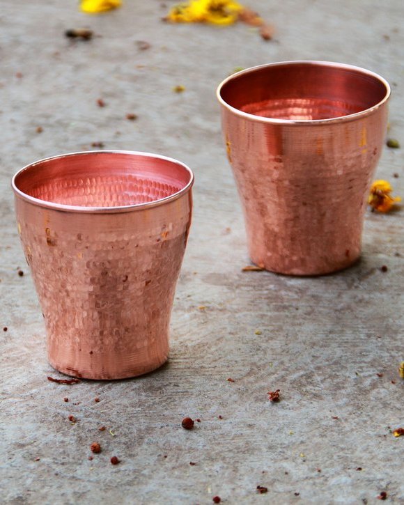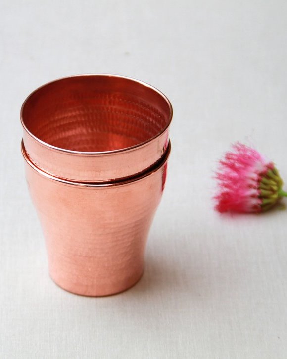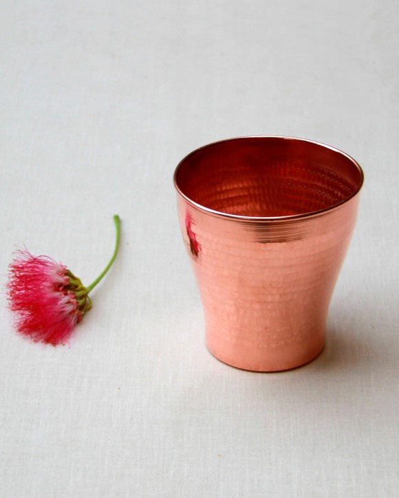 Make a morning ritual of drinking copper-charged water with this Terra Copper Tumbler. With a combination of hand-beaten etches and plain surface, the tumbler reveals the innate sheen of copper. Its silhouette is inspired by the simplicity of earthen water cups.