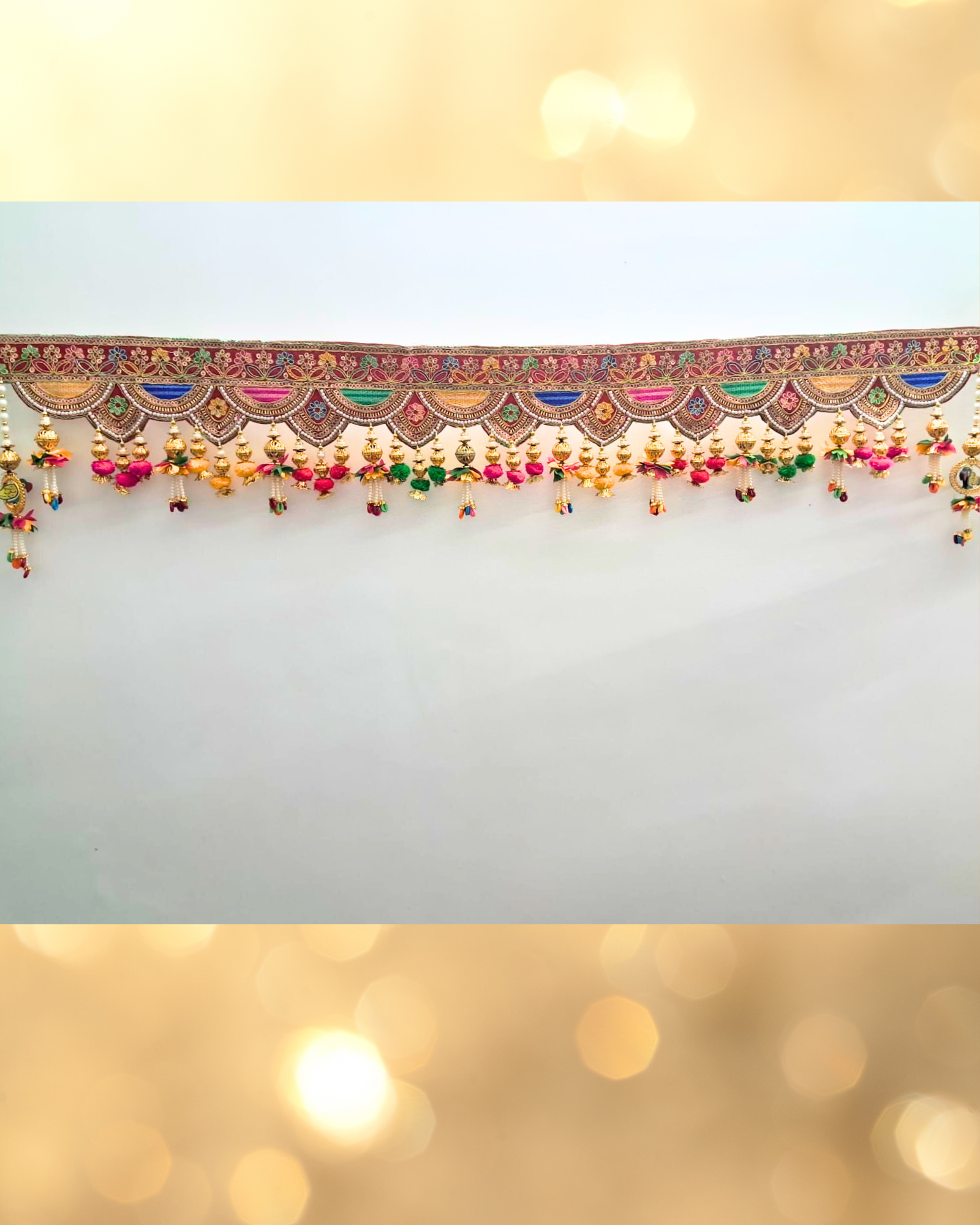 Please note: Each toran is handcrafted, so slight variations in color, embroidery, or bead arrangement add to its unique character and beauty.