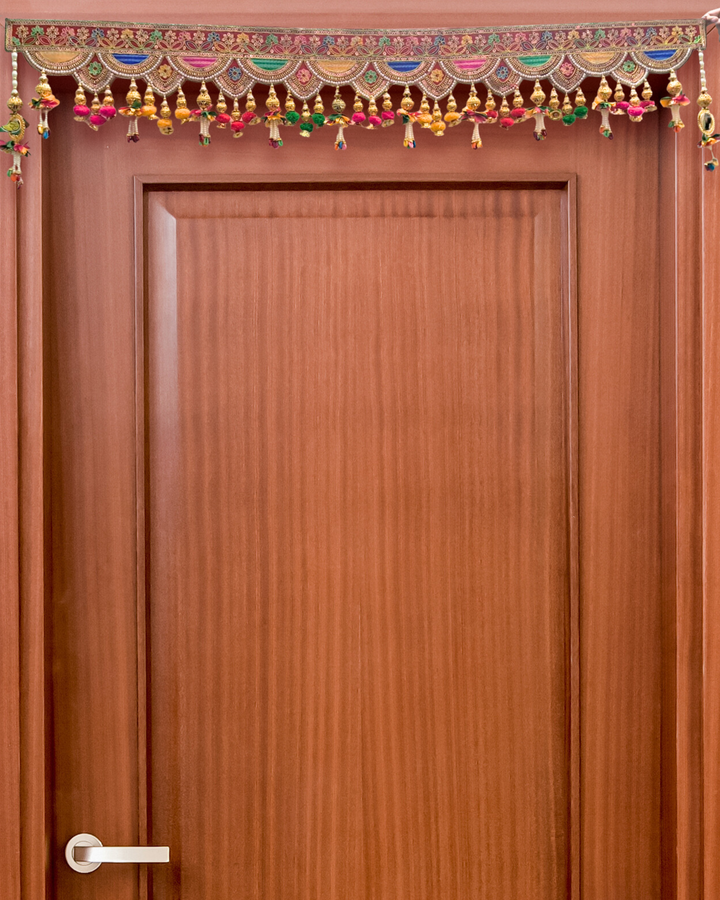 Embroidered Multicolor Fabric Toran with Beaded Tassels (Door Hanging Décor)